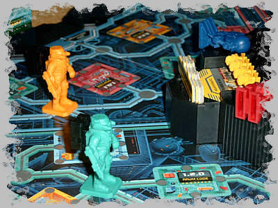 Disruptoren, 4 Negatrone, 4 Decoder, 16 Zugangskarten, 4 Sektoren-Klappen und