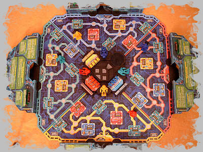 Ausstattung: 1 Spielplan, 1 Spielgerät, 4 Spielfiguren, 4 Roboter, 4